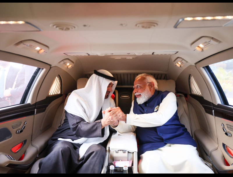 UAE: के राष्ट्रपति शेख मोहम्मद बिन जायद अल नाहयान सोमवार शाम करीब साढ़े 4 बजे नई दिल्ली पहुंचे। प्रधानमंत्री नरेंद्र मोदी ने राजनयिक प्रोटोकॉल से हटकर खुद पालम एयरपोर्ट पहुंचकर उनका स्वागत किया। राष्ट्रपति बनने के बाद शेख मोहम्मद बिन जायद का यह तीसरा भारत दौरा है, जबकि पिछले दस वर्षों में यह उनका पांचवां भारत आगमन है।